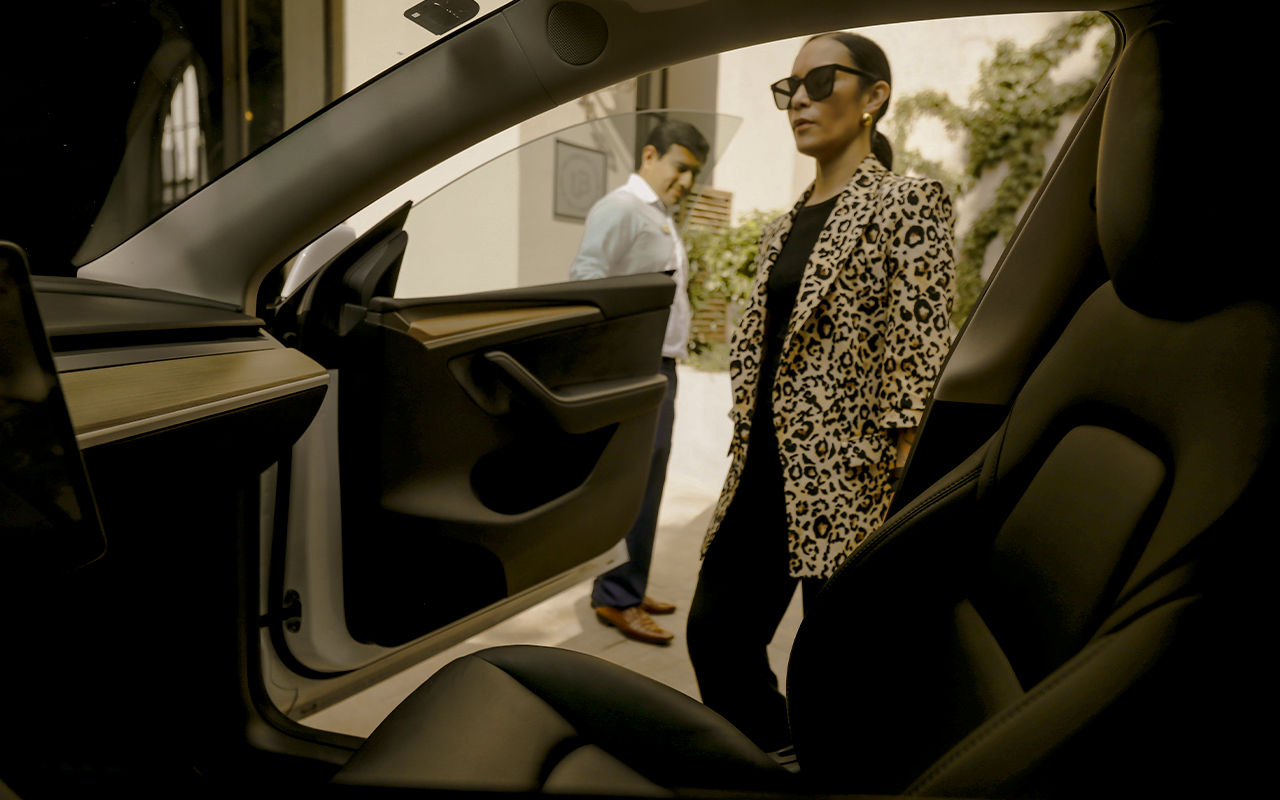 • Tesla Model Y: Capacidad para hasta 3 pasajeros. Vehículo totalmente eléctrico que minimiza la emisión de contaminantes y ofrece una experiencia silenciosa y de alta tecnología.